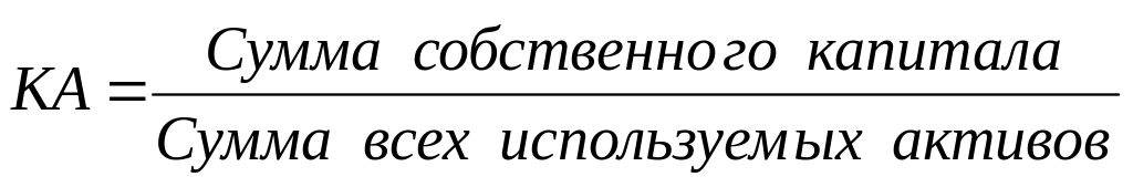 а) коефіцієнт автономії (КА). Він показує в якому ступені використовувані підприємством активи сформовані за рахунок власного капіталу. Розрахунок цього показника здійснюється по формулі: