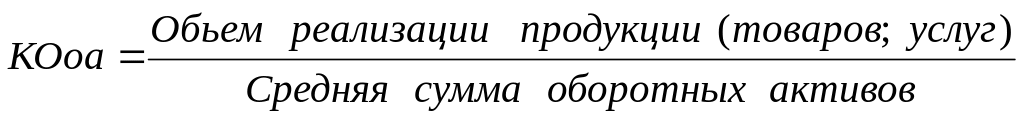 б) коефіцієнт оборотності оборотних активів (КОоа). Він розраховується по формулі: