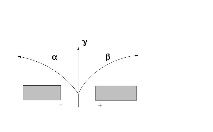 Investigations of the Curies and of the British physicist Ernest Rutherford showed that radioactive radiation is not homogeneous: a magnetic field causes it to divide into three beams, one of which does not change its original direction, while the other two deviate in opposite directions.