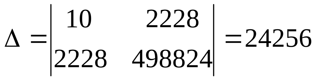 Бұл жүйені Крамер әдісімен шешіп a және b коэффициенттерін табамыз:
