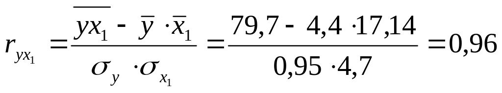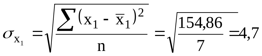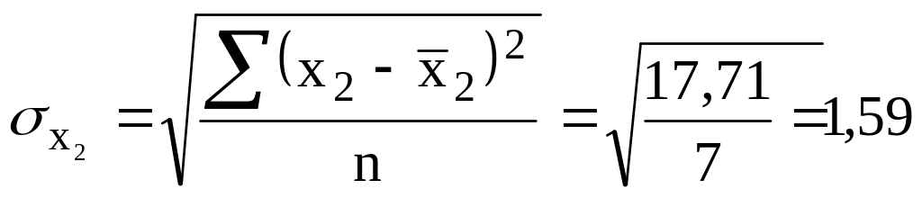 y y, x1, x2 параметрлерінің орташа квадраттық ауытқуларын табайық: