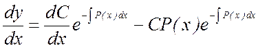 Выражение (7.3) есть общее решение уравнения (7.2). Чтобы найти общее решение уравнения (7.1), в котором функция P(X) обозначает ту же функцию, что и в уравнении (7.2), применим прием, называемый методом вариации произвольной постоянной и состоящий в следующем: постараемся подобрать функцию С=С(X) Так, чтобы общее решение линейного однородного уравнения (7.2) являлось бы решением неоднородного линейного уравнения (7.1). Тогда для производной функции (7.3) получим: