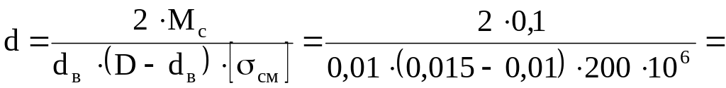 где Асм = d(D – dв) – площадь смятия; [σсм] – допускаемые напряжения для материала штифта при смятии, [σсм] = 200 МПа. Отсюда: