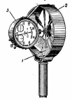 Скорость движения воздуха измеряется с помощью анемометров – крыльчатых и чашечных (рис.1.2). Крыльчатый применяется для измерения скорости движения воздуха до 10 м/с, а чашечный – до 30 м/с. Скорости движения воздуха менее 1 м/с измеряются термоанемометрами, в основу работы которых положен принцип охлаждения датчика, находящегося в воздушном потоке и нагреваемого электрическим током. Датчик представляет собой полупроводниковое микросопротивление. Термоанемометром измеряют скорости движения воздуха от 0,03 до 5 м/с при температуре от 1 до 600С. С помощью термоанемометра можно измерить не только скорость движения воздуха, но и его температуру, для чего производят соответствующее переключение прибора.