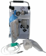 1. редуктор. 2. манометр. 3. диск регулировочного эжектора. 4. баллон. 5. маска. 6. гофрированная трубка. 7. заглушка предохранительного клапана. 8. дыхательный мешок.
