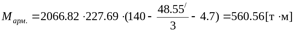 где As=227.69 см2, s=2066.82 , x/=48.55 см, аu=4.7 см (из расчета на выносливость)