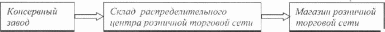 Материальные потоки могут протекать между различными предприятиями или внутри одного предприятия. Прежд чем формулировать определение материального потока, разберем пример доведения готовой продукции (консервов) о завода-изготовителя до торгового зала магазина: