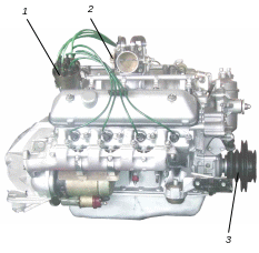 1 – датчик-распределитель; 2 – датчик положения дроссельной заслонки; 3 – шкив коленчатого вала