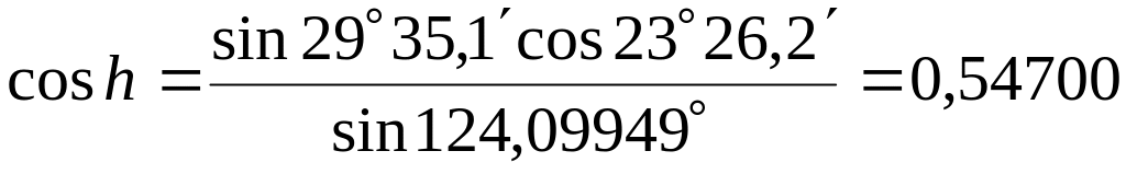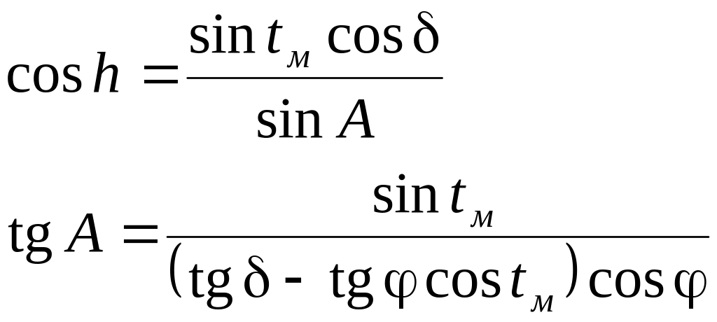 Формулу cosh получаем преобразованием формулы sinА из первой системы формул для вычисления высоты и азимута светила. Формулу же tgA получаем преобразованием формулы ctgA.