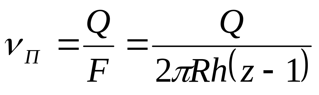 Для визначення середнього значення швидкості потоку виходимо із наступних міркувань. Розглянемо площу поперечного перерізу міжтарілкового простору сепаратору, яка дорівнює: