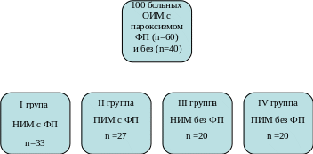 Примечания: НИМ с ФП – больные с ИМ нижней локализации, осложненным приступами фибрилляции предсердий; ПИМ с ФП – больные с ИМ передней локализации, осложненным приступами фибрилляции предсердий; НИМ без ФП – больные ИМ нижней локализации без фибрилляции предсердий; ПИМ без ФП – больные с ИМ передней локализации без фибрилляции предсердий; КФК – креатинфосфокиназа; КФК МБ – МБ фракция креатинфосфокиназы.