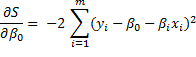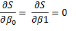 Подберем b0 и b1 так, чтобы при подстановке их вместо β0 и β1 значение S было минимальным из возможных. Найдем частные производные (∂):