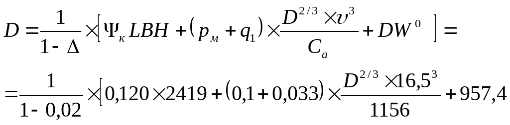 Составляем, решаем кубическое уравнение и находим водоизмещение: