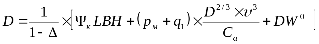Для грузовых судов применяется формула адмиралтейских коэффициентов: