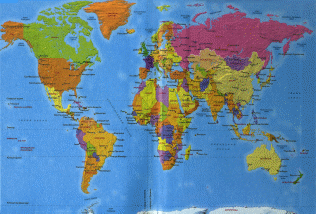 Казалось бы, иллюзии Мюллера – Лайера имеют весьма отдаленное отношение к международным отношениям. Но давайте сравним две карты мира: одну - политическую карту мира, известную нам со школьной скамьи (Рис. 15), и другую – карту мира Р. Рейгана (Рис. 16). Как известно, он был довольно недалеким американским президентом, по профессии актером, – коэффициент интеллекта ниже был только у Дж. Буша – младшего. Воспринимал мир он довольно своеобразно, как это видно из его когнитивной карты. Но важные внешнеполитические решения он принимал исходя именно из своей субъективной, а не объективной карты. Естественно, что такие же карты есть и у политических лидеров других стран. Все это свидетельствует о важности восприятия и иллюзий в междунароных отношениях.