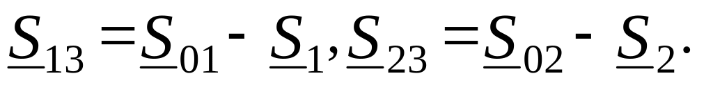 Комплексные значения потоков мощности в распределительных линиях ЛЭП-12 и ЛЭП-23 находятся из уравнений, составленных по 1-ому закону Кирхгофа (см. рис. 2):