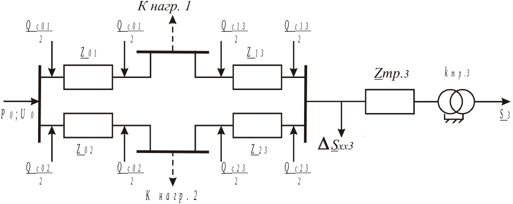 Рис.3. Схема замещения электрической сети