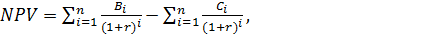 Метод розрахунку NPV передбачає зіставлення величини інвестицій, що вкладаються у проект (ІС), із загальною величиною чистих грошових надходжень протягом запланованого періоду, що наведені до теперішньої вартості – (PV). Інвестиційні витрати також наводяться до теперішньої вартості: