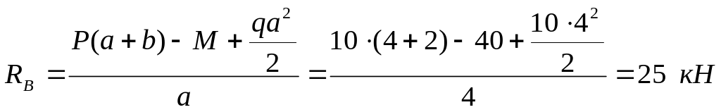 Берілгені: Р = 10 кН; М = 40 кН м; q = 10 кН/м; = 4 м; = 2 м.