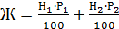 Р - питоме відношення м'яса згідно угодованості, відсоток (згідно завданню, і див. додаток Б1, 2, 3);