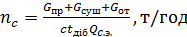 Qc.n. – паспортна продуктивність сепаратора при очистці.