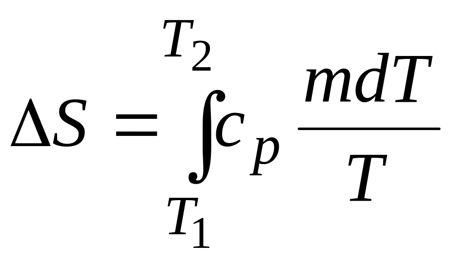 Изменение энтропии (∆S) при нагревании тела от температуры Т1 до Т2: