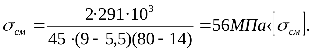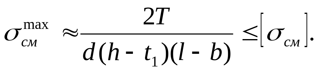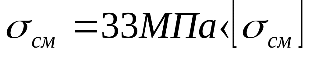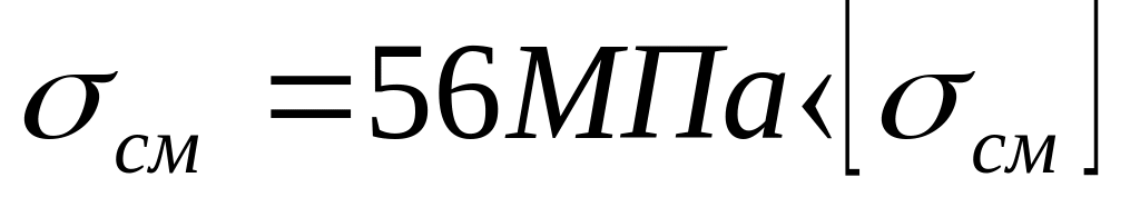 Напряжение смятия и условия прочности по формуле (8.22) [1]: