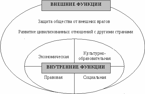 Министерство образование просвещает, министерство здравоохранение лечит, министерство сельского хозяйства сеет, министерство спорта тренирует, министерство внутренних дел обеспечивает порядок внутри, а министерство обороны снаружи и т.д. Огромный аппарат государственных органов выполняет разнообразные задачи, связанные с экономическим, культурным и социальным развитием нашей страны. Но сразу же отметим: что функции государства не следует отождествлять с функциями отдельных его органов. В отличии от функций многочисленных государственных органов, специально предназначенных для определенного вида деятельности, функции государства охватывают его деятельность в целом, в них реализуется социальная ценность и сущность государства, их осуществлению подчинена работа всего государственного аппарата и каждого органа в отдельности. Чтобы понять эту сложное и многообразное проявление государства в действии, нам нужно будет сделать классификацию функций государства. Самая распространённая классификация деления функций государства, это деление их на внутренние и внешние. Где первые показывают, что государство делает в рамках своей территории, а вторые, что она делает за ее пределами.