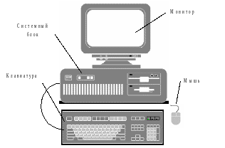 Типовая конфигурация, или физическое устройство компьютера на примере стационарного ПК представляет собой совокупность трех основных частей (Рис. 2):
