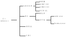 Здесь С:\ - папка самого верхнего уровня, включающая в себя магнитный диск; папки 1-го уровня вложенности: GROUP, NC, SHELL, CHI; папки 2-го уровня вложенности: 99EM, SCOLL, HELP, UTIL.