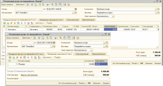 Рисунок 9-8. Документ «Реализация услуг по переработке»