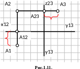 Крім осі Х12 з’являються дві нові осі: Y13=П1П3; Z23=П2П3. Літерою О123 позначаємо точку перетину всіх трьох осей проекцій.