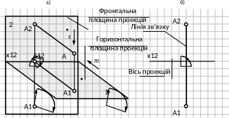 (А1А2) – вертикальна лінія зв’язку (лінія зв’язку в системі площин проекцій П1 і П2);
