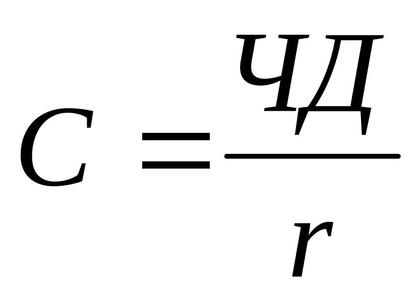 Метод капитализации дохода используется в тех случаях, когда объект оценки приносит стабильный доход. Под чистым доходом в данном случае понимается положительное сальдо денежного потока от использования объекта недвижимости за определенный период времени. При этом его стоимость определяется по следующей формуле:
