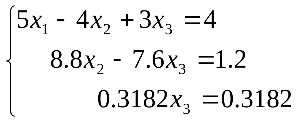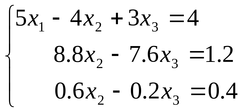 Отримуємо еквівалентну систему рівнянь з трикутною матрицею коефіцієнтів: