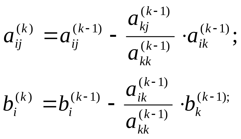 Наступні кроки виключення невідомих виконуються аналогічно. На k-му кроці коефіцієнти і вільні члени системи рівнянь обчислюються за такими формулами:
