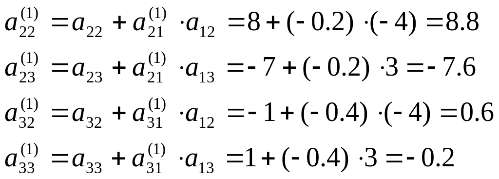 обчислення інших елементів матриці А, що не входили в опорні рядок і стовпець на цьому і попередніх кроках перетворення. Використовується формула (3.5);