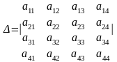 Визначником 4-го порядку називається визначник, який містить 4 рядки та 4 стовпці, тобто це визначник вигляду:
