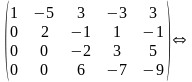 додамо до елементів 2-го, 3-го, 4-го рядків відповідні елементи 1-го рядка, помноженого послідовно на -2, -3 і 5
