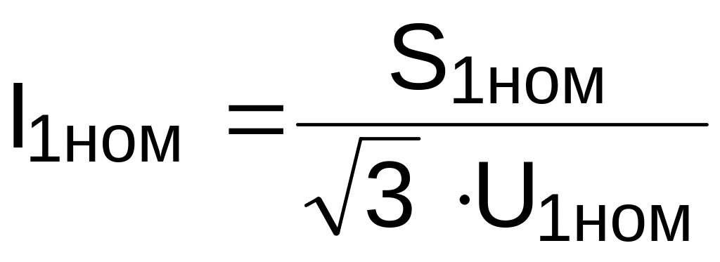 где Sном – номинальная полная мощность трансформатора; U1ном, U2ном – номинальное напряжение первичной и вторичной обмоток трансформатора.