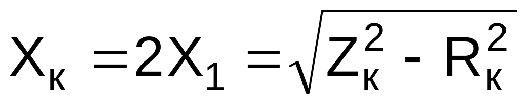 где Rк, Xк, Zк – активное, реактивное индуктивное и полное сопротивления короткого замыкания трансформатора; R1, X1, R2, X2 – активное и реактивное сопротивления первичной и вторичной обмоток трансформатора; Uк% –- напряжение короткого замыкания; К – коэффициент трансформации.