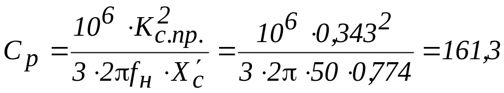 Расчетная фазная емкость батареи конденсаторов