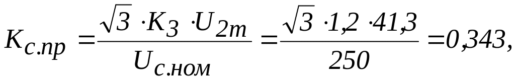 где Кз = 1,2 – коэффициент запаса, учитывающий наличие высших гармоник в напряжении на входе выпрямителя и возможные кратковременные перенапряжения в переходных режимах.