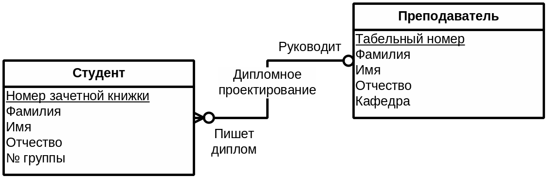 Рис. 3. Пример связи "один-ко-многим" сущностей "Студент" и "Преподаватель"