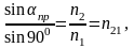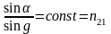 n21 = n2/n1; n21 = v1/v2. где v1 и v2 - скорость света в первой и во второй среде соответственно.