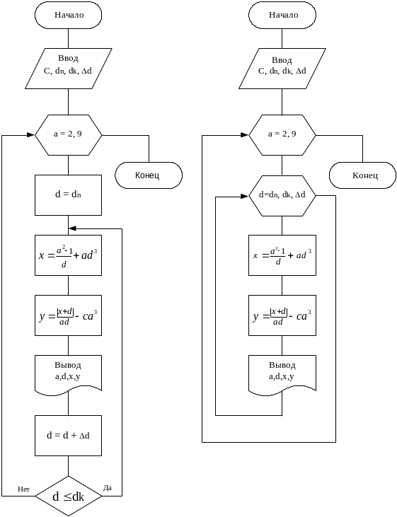 Блок-схема алгоритма вычисления значений x и y приведена на рис. 5.