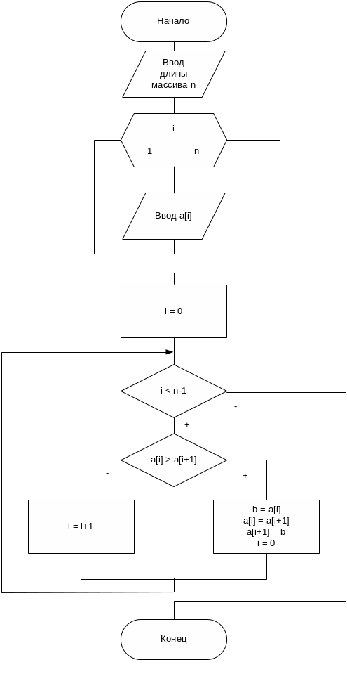 Таким образом, алгоритм будет состоять из n-1 прохода (где n – длина массива), каждый из которого, будет включать четыре действия: