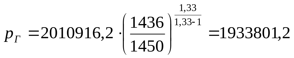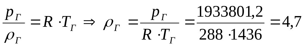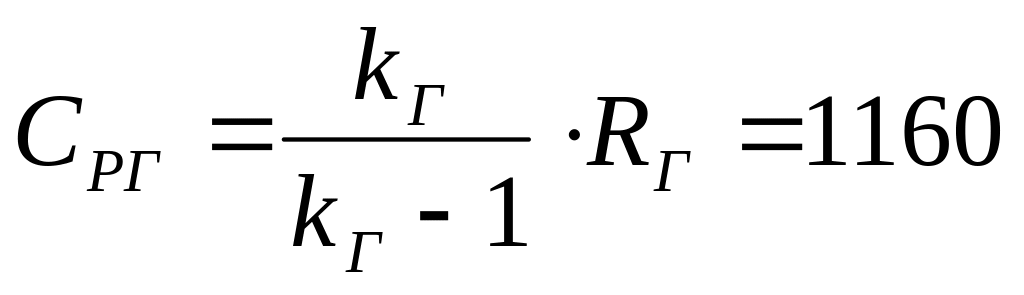 Выбираем сГ = 180 м/с. Принимая значения коэффициента адиабаты и газовой постоянной равными kГ = 1,33 и RГ = 288 Дж/(кг·К), вычислим удельную теплоёмкость газов СРГ