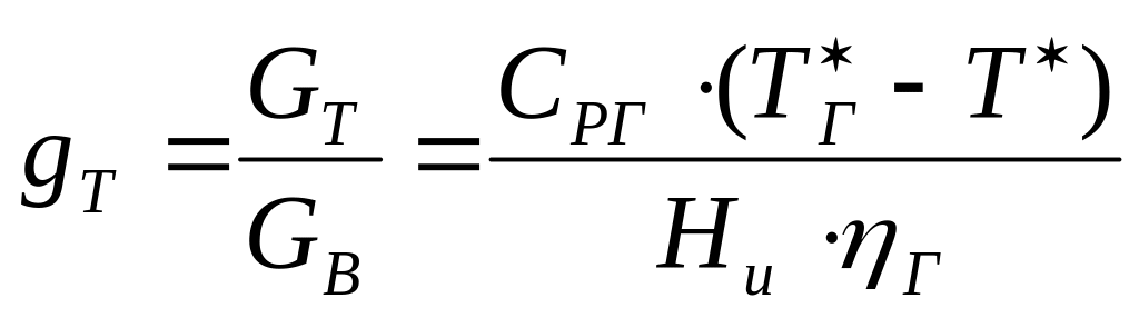 Относительный расход топлива в основной камере сгорания GT /GB определяется из уравнения баланса энергии: