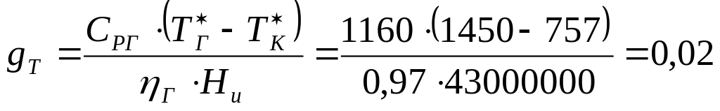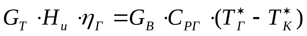 ηГ – коэффициент полноты сгорания (выделения теплоты), который на расчётных режимах для основных камер сгорания принимает значения в пределах 0,970…0,995. При этом чем выше температура (больше область горения в жаровых трубах), тем большие значения коэффициента ηГ рекомендуется принимать.